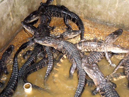 One of the alligator pens at Wildlife Gardens, where the reptiles are raised for their hides and meat.