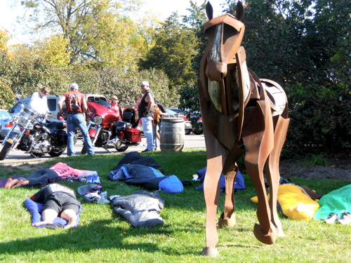 Runners in The Bourbon Chase get some sleep on the ground at Woodford Reserve before the last leg of the race.