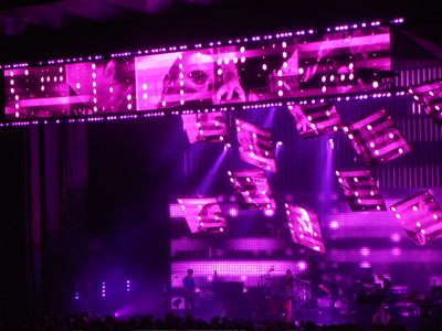 The stage lighting and choreography were brilliant. The inevitable comparison that Radiohead is this generation’s Pink Floyd is legitimate considering both bands embrace conceptualization and experimentation, but I saw those last two Floyd tours and their lighting design was fuck-all compared to what was unveiled Tuesday.