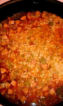 All the spices are in and rice is doing its magic. This dish can be a little hot but perfect for this time of year.