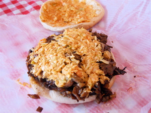 Now in the interest of full disclosure, I’ve never been a big fan of putting cole slaw on top of my barbecue. I’ve always felt that if your ‘cue is good enough it can stand alone, and putting a mess of cole slaw over it just suppresses the flavor. North Carolina is big on putting slaw on its bbq, but it can have beneficial results since they tend to serve pulled pork in a vinegar-based sauce.