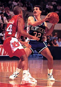 He went on to play at the University of Kentucky, which at the time was suffering through turbulent times under coach Eddie Sutton. The Wildcats were already on probation for an extensive scheme of paying recruits, when an overnight mailing envelope from a Kentucky assistant coach to a player’s family member was discovered with $1,000 cash in it; also, a UK player was alleged to have received improper assistance on his college entrance exams and was banned from NCAA competition.