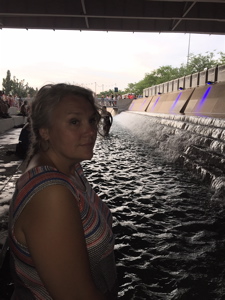 Maia catches some shade and cool water before we made our exit from Forecastle 2016.