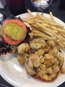 As the hour of the day moved past AM to PM, Maia and I sided with lunch over breakfast, though the Crispy Fried Chicken & Waffles was hard to pass up. I had the Cajun Fried Shrimp Po-Boy, that came dressed with Creole mayo and field greens on a toasted roll. It overflowed with flavorful shrimp and proved substantial if not quite up to New Orleans standards where this style sandwich originated.