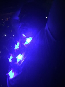 Trust my buzz was fully engaged. It was an all-day affair, pre-gaming since waking with breakfast drinks. Things were going to get psychedelic, so I chose to sport a necklace of blue LED light-up dolphins. I arbitrarily purchased them that afternoon at the Georgia Aquarium. You never know when you might need light in a dark space, said anyone who has walked the moors at night.
