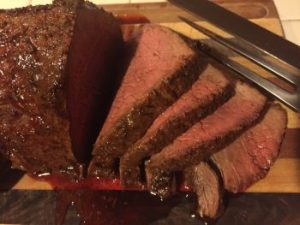 Around 5:45PM it was time to get dinner rolling, and to pick some kids up from swimming. I had a 3-pound Boneless Sirloin Tip Roast that begged to be utilized. A quick Internet search uncovered an AllRecipes.com offering of Herb Rubbed Sirloin Tip Roast. I needed something simple, without much prep and sounded potentially yummy. I ended up following this recipe closely and it came out of the oven at a wonderful medium rare.