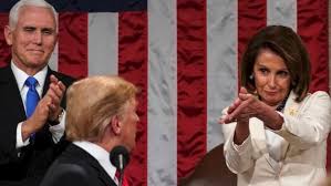 After Trump’s attempt at sincerity in delivering his line about rejecting revenge over cooperation, Pelosi stood, making sure to lock eyes with the president as he turned toward her, and extended her arms to give a pity-clap to the doomed and drowning Commander-in-Chief, with a knowing look that she was coming for this chump.